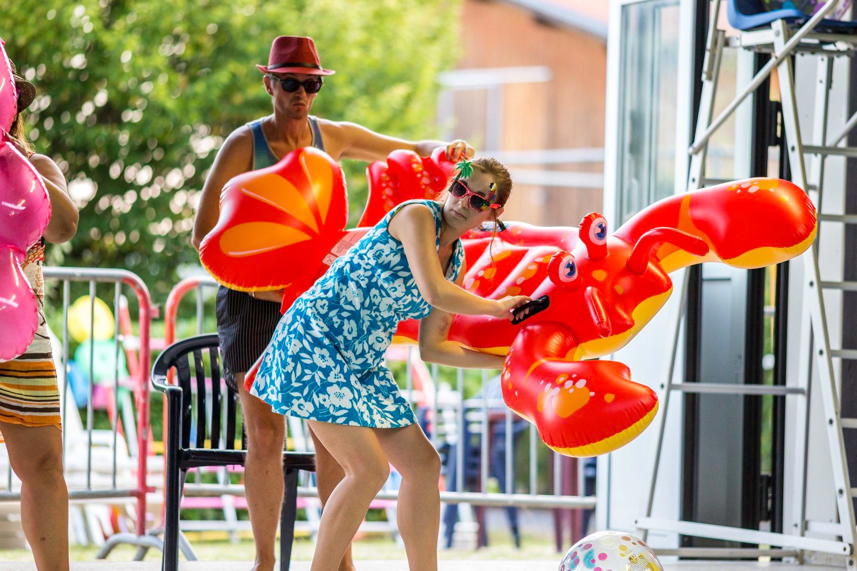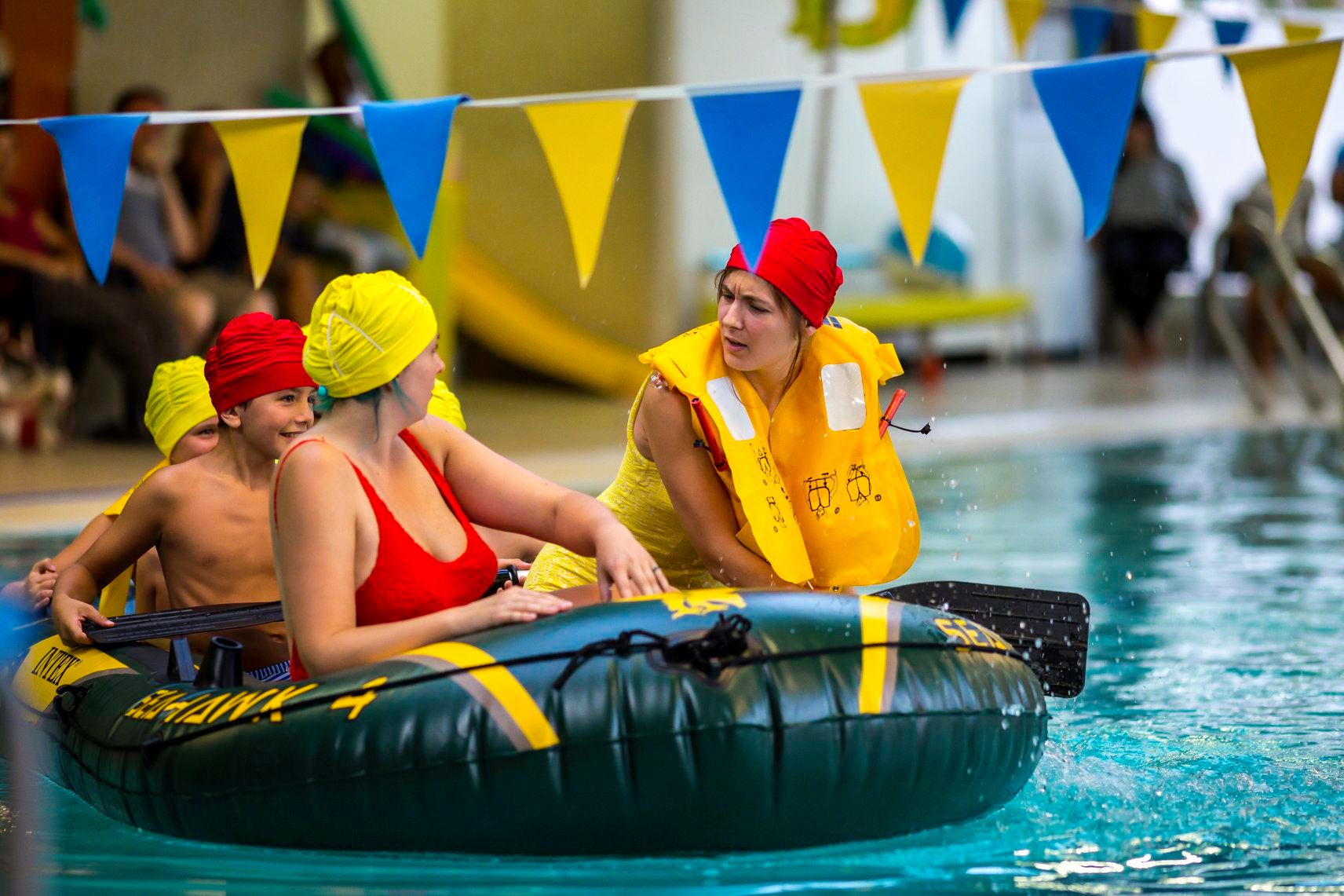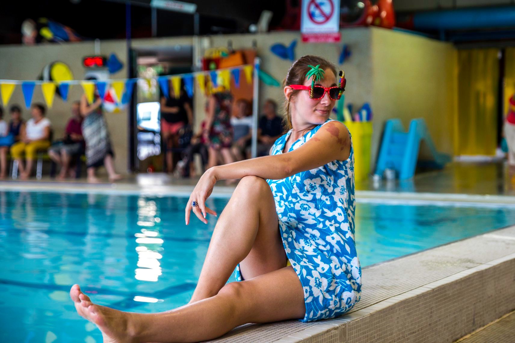 Il s’agit d’un temps festif et musical, une énergie un peu folle où des personnages hauts en couleurs et leurs bouées gonflables vont envahir une fontaine publique. Un souffle joyeux, avec du saxophone, du chant lyrique et des images loufoques dans une esthétique de la « Pool Party », des bouées gonflables, des serviettes de plages et l’odeur du monoï. L’idée est d’amener du « jeu » dans la vie de tous les jours. Un spectacle dans une piscine avec simplement des animaux gonflables, c’est possible, pourquoi pas ? On veut amener de la poésie dans le quotidien, surprendre les passant-e-s dans leur trajet de tous les jours pour leur permettre de s’arrêter et de rêver.